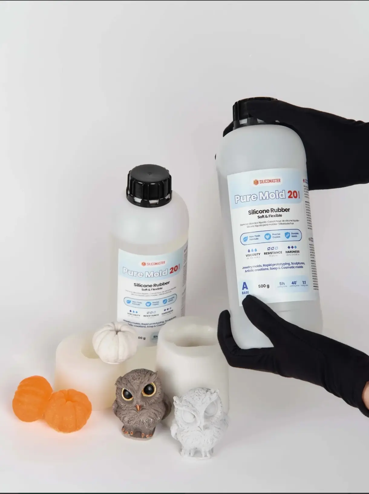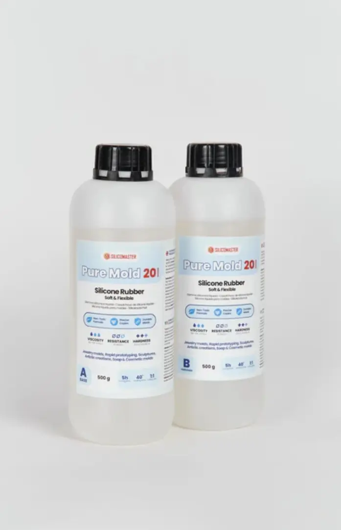 Το Pure Mold 20 είναι ρευστή σιλικόνη σχεδιασμένη για τη δημιουργία καλουπιών υψηλής ποιότητας. Δημιουργήστε γλυπτά, πρωτότυπα αντικείμενα, καθώς και αντικείμενα τέχνης. Με σκληρότητα Shore A 20 και φυσική διαφάνεια, είναι ιδανικό για μικρά έως μεσαίου μεγέθους λεπτομερή εκμαγεία, εξασφαλίζοντας ακρίβεια και σταθερότητα διαστάσεων. Χάρη στην ισορροπημένη ελαστικότητά του , επιτρέπει την εύκολη αφαίρεση ακόμη και σύνθετων τεμαχίων.